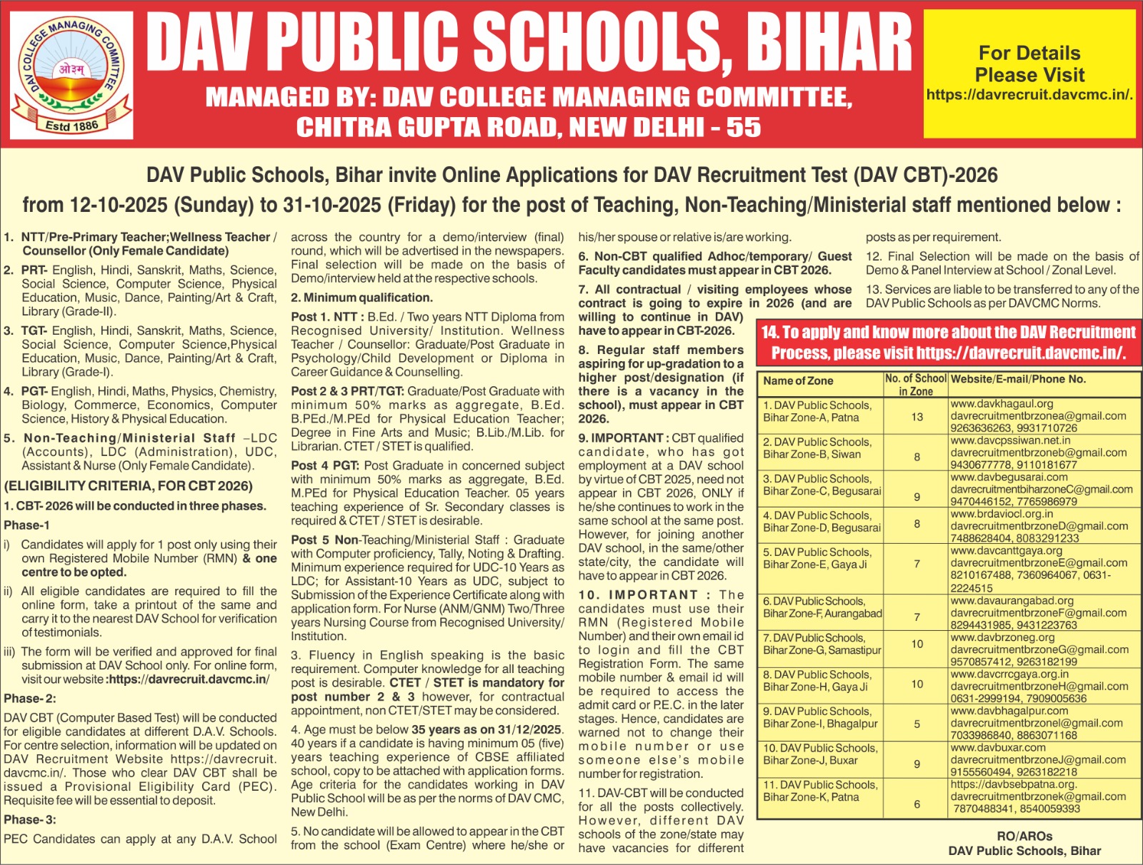 DAV RECRUITMENT 2025-26